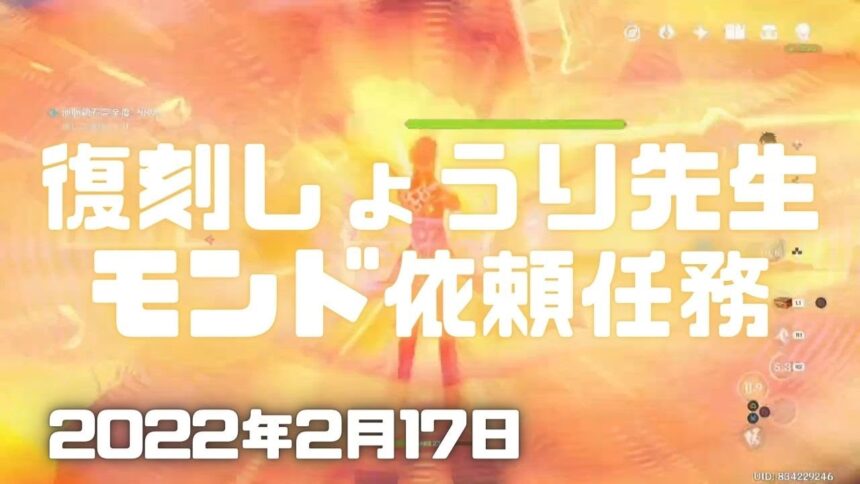 原神を配信で実況しました。 しょうり先生で無相の岩を倒し稲妻依頼任務「全能グルメチーム・ぶっ飛んだ発想」等をやりました。 Genshin ver.2.5(PS4)ミルダムアーカイブ2022年2月18日その1です。