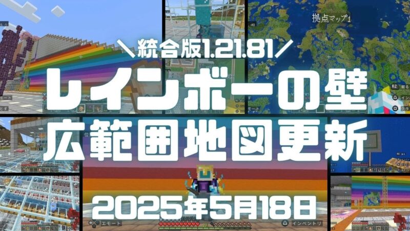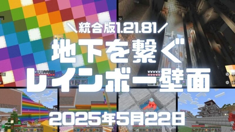 【マイクラ】拠点付近のレインボーの壁完成。巨大建築地下とゴレトラ地下を繋ぐ
