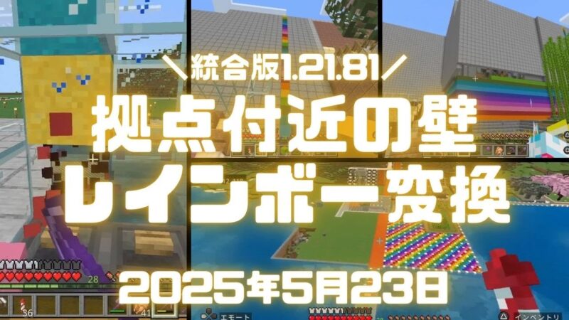 【マイクラ】拠点南の左側の壁とゴレトラ付近の床をレインボーに変換