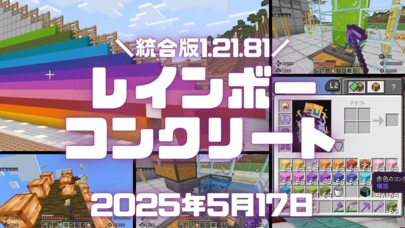 【マイクラ】レインボーの壁にしたい。コンクリートを大量に作った