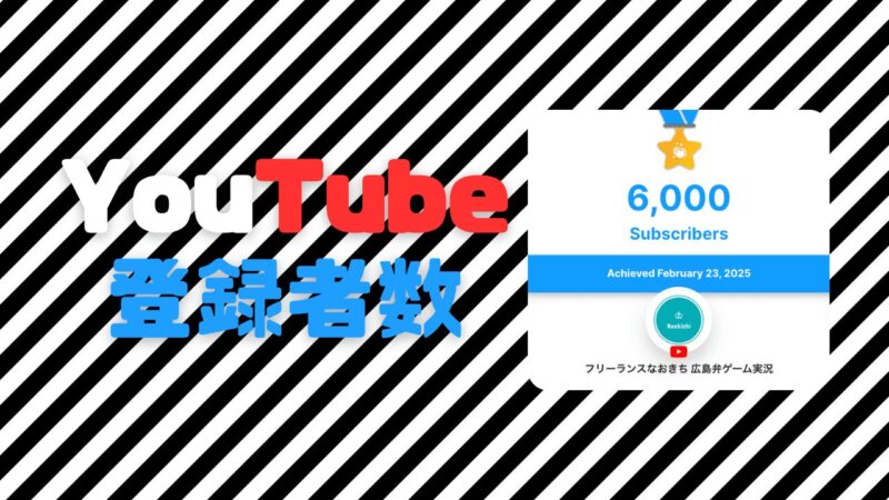 2025年2月23日にYouTubeのチャンネル登録者数が6,000人を突破しました。 ありがとうございます。