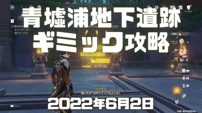 原神を配信で実況しました。 青墟浦地下遺跡の扉のギミックを攻略しました。 ノーカットでのやり方がこち…