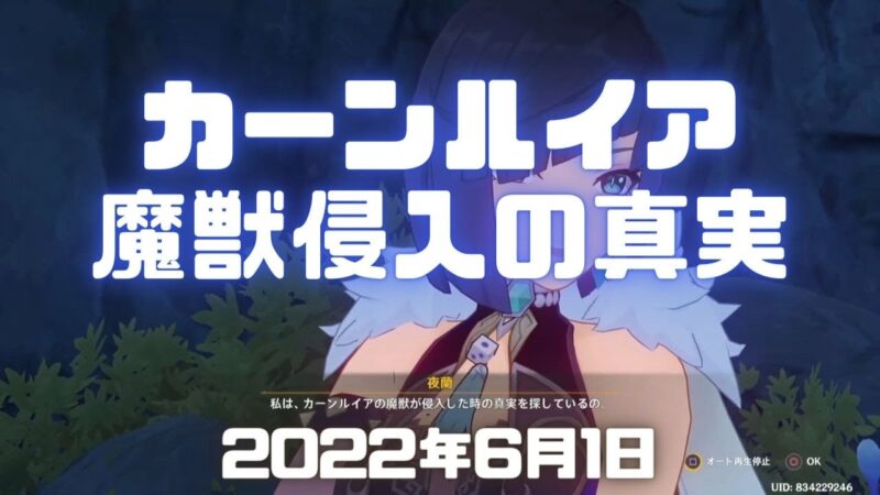 原神を配信で実況しました。 夜蘭が「私は、カーンルイアの魔獣が侵入した時の真実を探しているの。」とい…