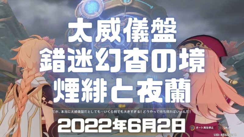 原神を配信で実況しました。 たいぎばん(太威儀盤)の秘境を開始しました。 錯迷幻杳の境です。 煙緋と夜…