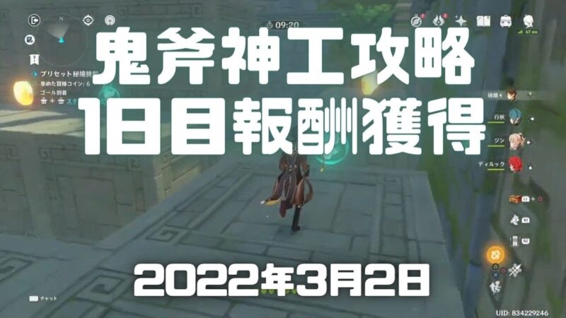 原神を配信で実況しました。 鬼斧神工を攻略しました。 ステージ「早く、もっと早く!」の報酬を全部とり…