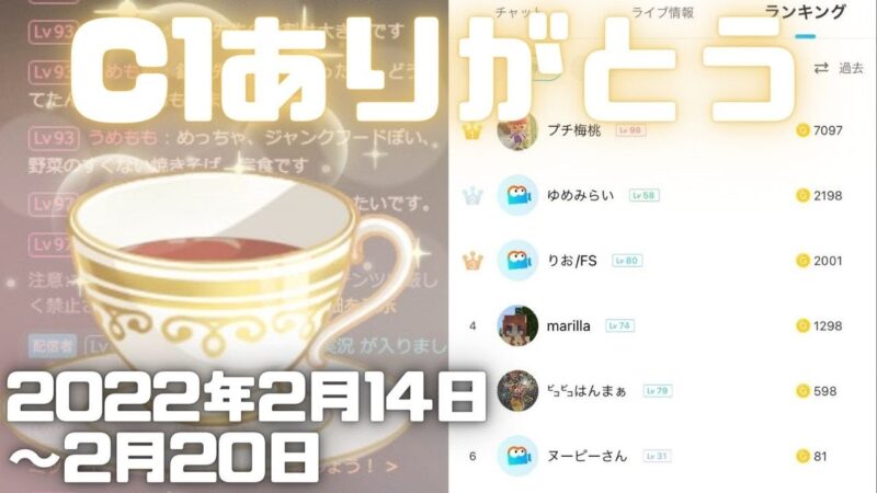 先週のミルダムの配信者ランク振り返りです。 C1にあげてくれる為に複数の人が待機してくれました。 気持…