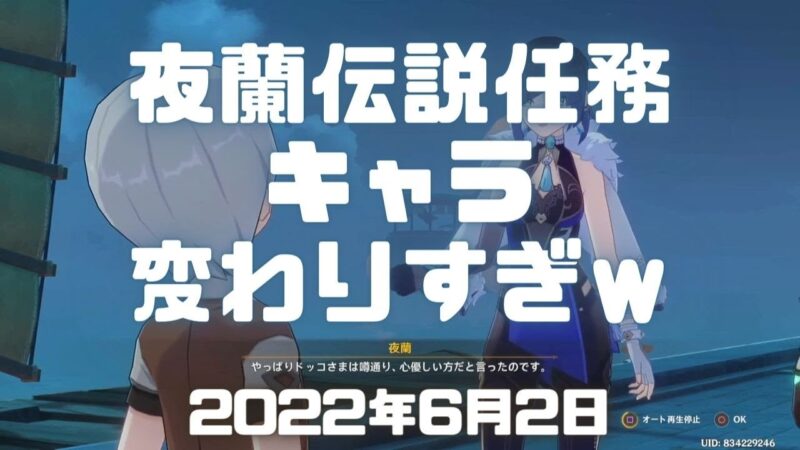原神を配信で実況しました。 知易の評判をドッコサクに聞く夜蘭のキャラがいつもと違いすぎて面白かったで…