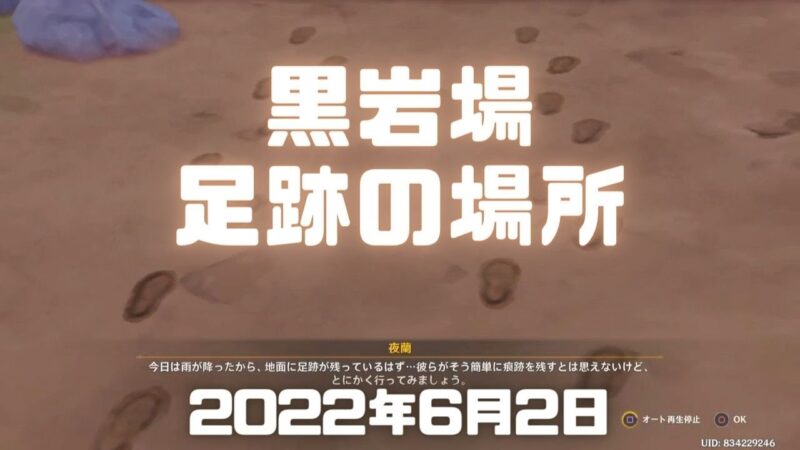 原神実況!黒岩場の足跡どこ?場所がこちら!