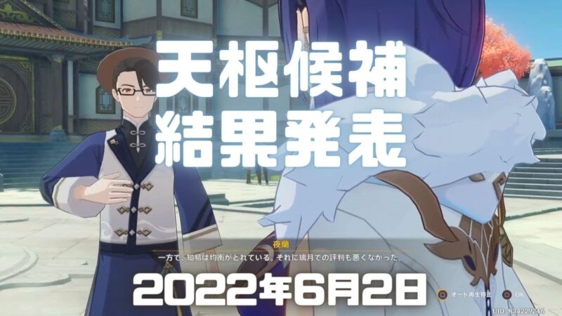 原神を配信で実況しました。 天おじから天枢を引き継ぐ候補「乾瑋」「明博」「 知易」を夜蘭と面接しまし…