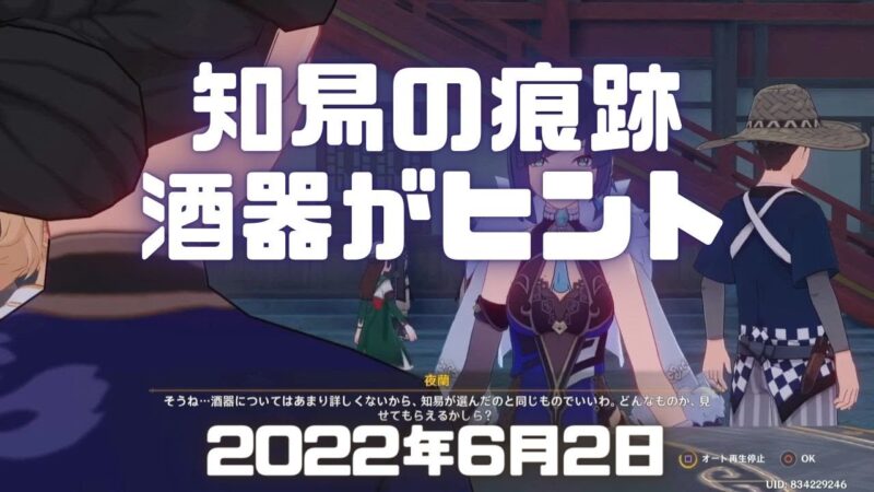 原神を配信で実況しました。 知易の痕跡を探します。 酒器がヒントになってるようです。 関わっている人物…