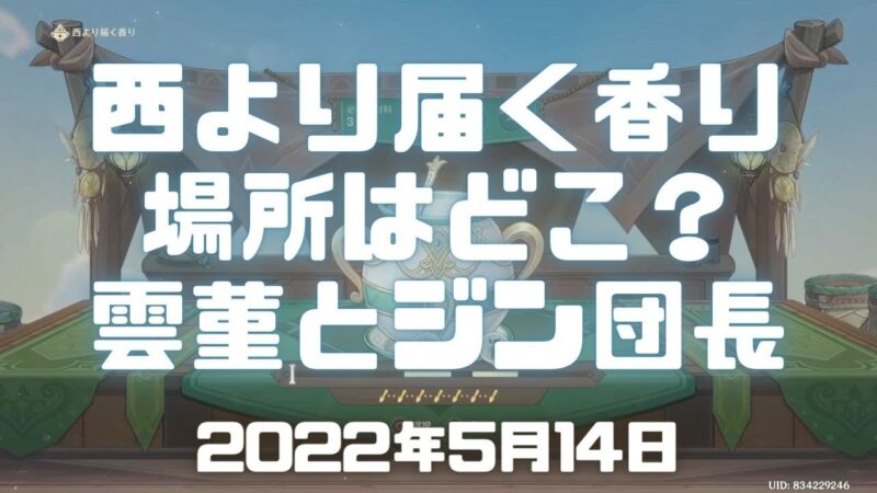 原神を配信で実況しました。 「西より届く香り」がどこで始めるのか分からず戸惑いました。 場所はここで…