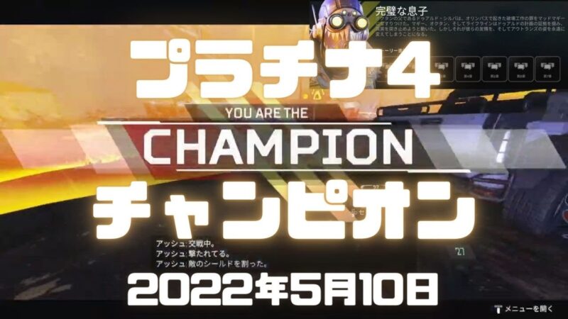 エーペックスレジェンズを配信で実況しました。 ランクマッチのプラチナ4で野良で初チャンピオンになりま…